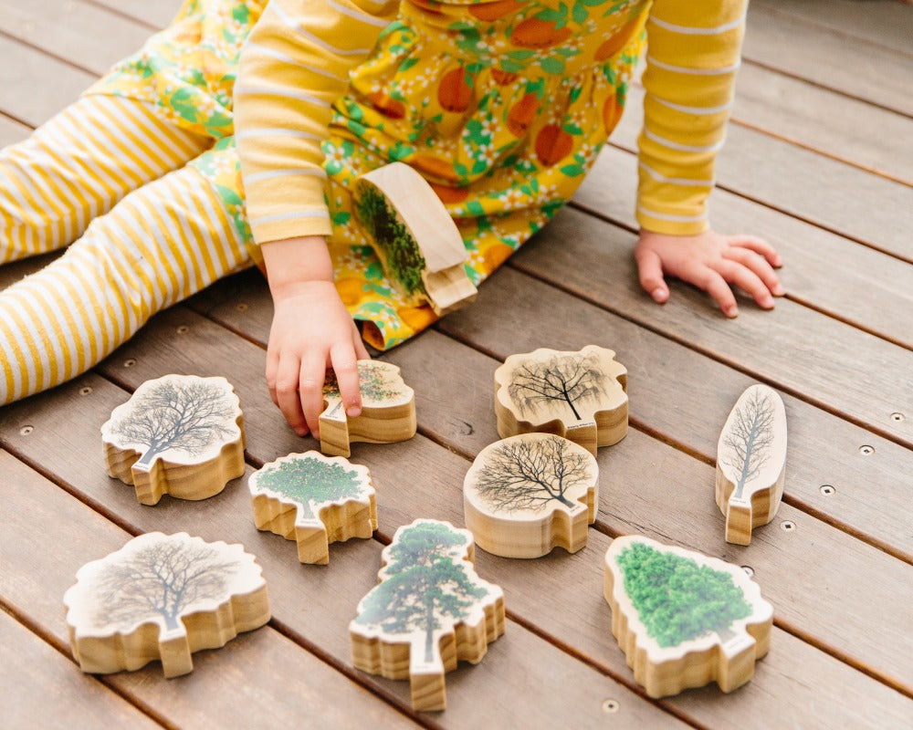 The evergreens have the same image on both sides to correctly represent how they look all year round, while the deciduous have what the tree would look like in the warmer months on one side, and the colder months on the other when they lose their leaves. A great way for children to learn about the seasons, and about our environment all the while having fun!