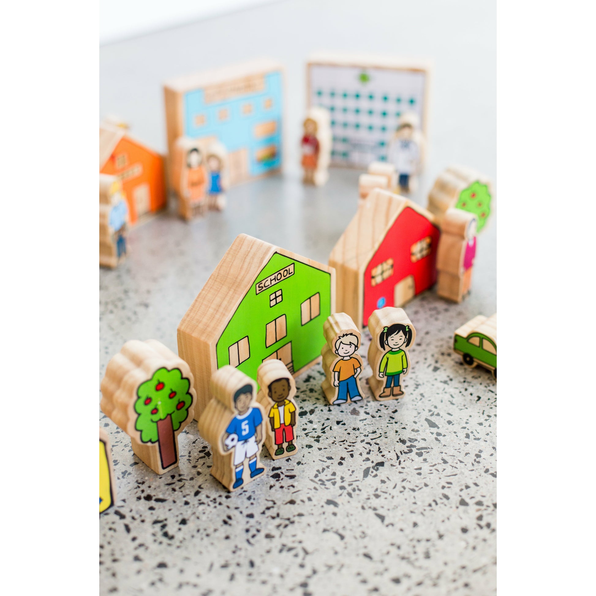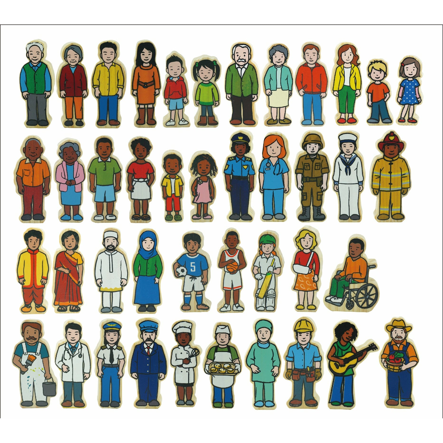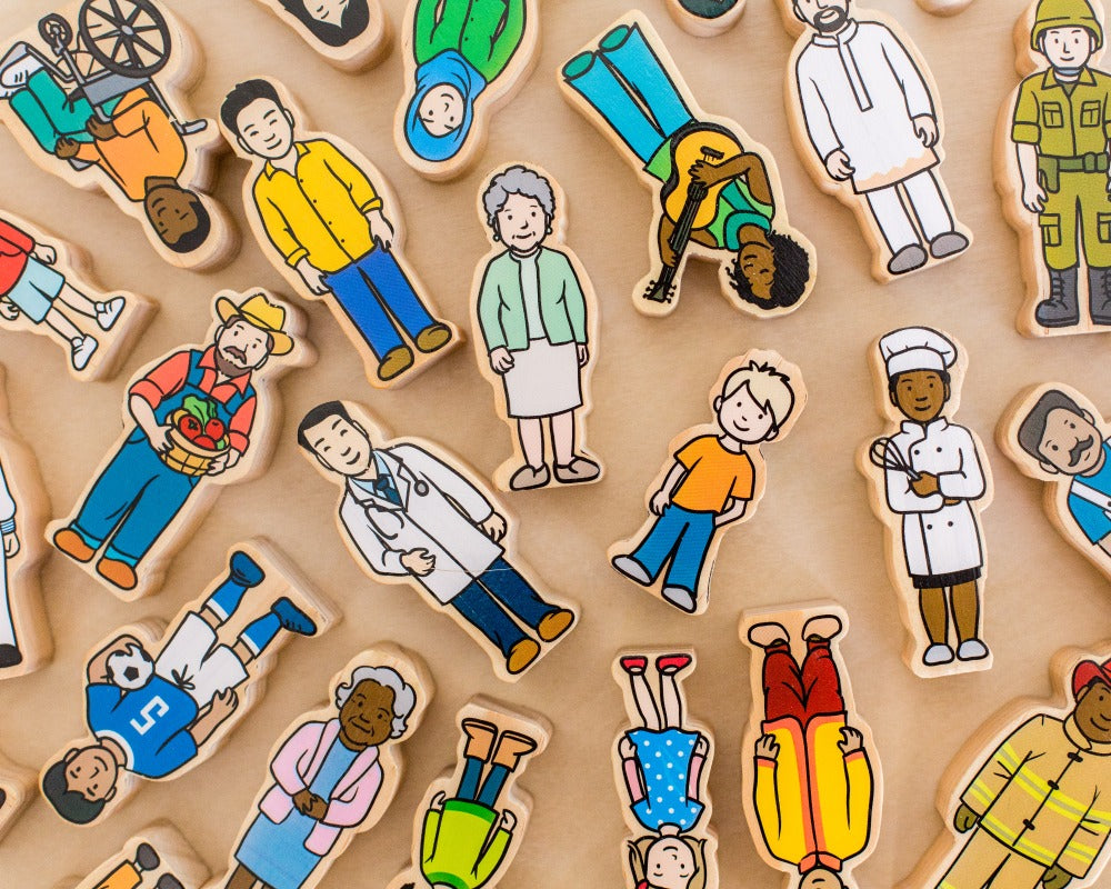 Great for role-playing and storytelling, this 42 piece Wooden Village People set represents a multicultural community that comprises of a diverse range of families from different ages, gender and occupations. It is a fantastic toy set for pretend play as well as opening up conversations about diversity, equality and belonging. It can also assist children to develop a sense of identity by understanding different cultures, languages, families and appearances while they learn about their community as well as themselves through play. Images are printed using non-toxic heat transfer technology and sealed with a clear matt varnish to ensure they last for years to come!