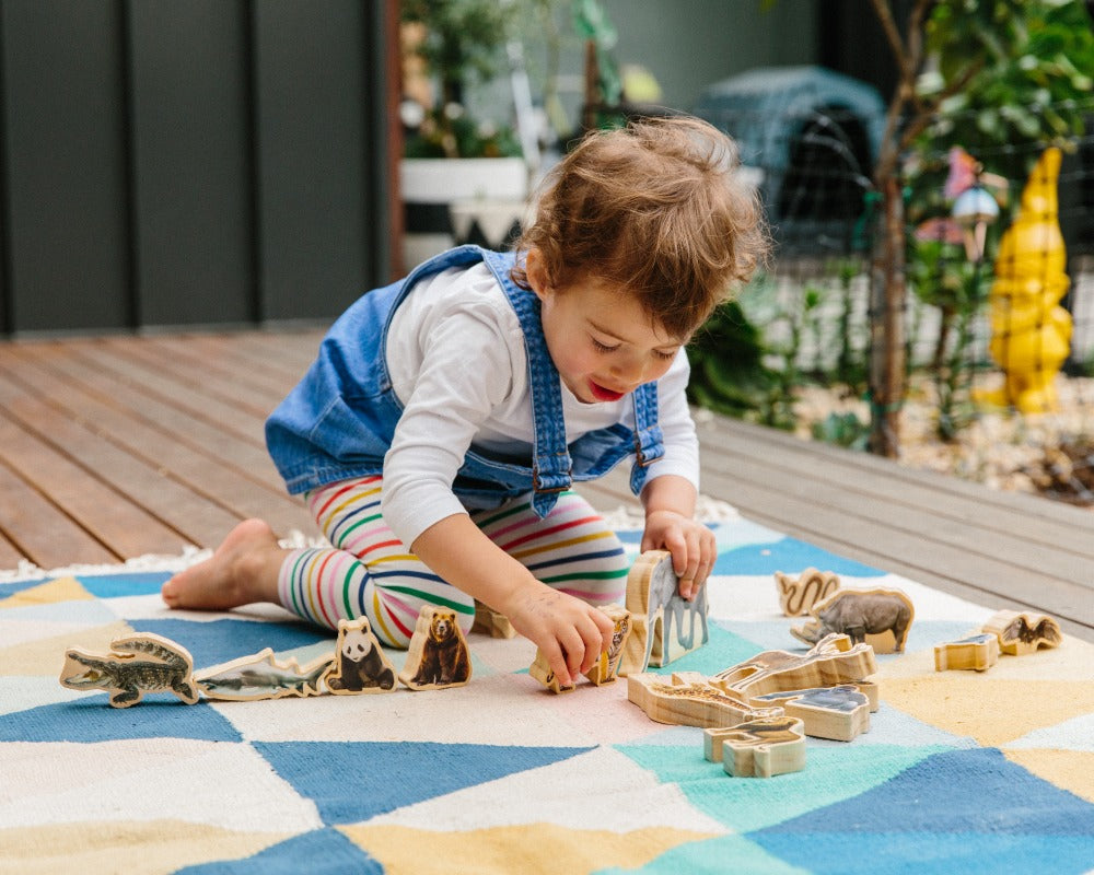 These brightly coloured wooden animals will take children to a fun imaginary trip into the wild, illustrated to demonstrate a range of animals from all over the world that comes from the land and sea. This is an excellent toy for children to promote social and imaginative play while encouraging them to feel positive and confident while they learn through play. This set consists of a panda, giraffe, bear, tiger, tortoise, dolphin and so much more. Each solid wood animal is smooth and lightweight, designed to be easily grasped by little fingers. Images are printed using non-toxic heat transfer technology and sealed with a clear matt varnish to ensure they last for years to come!